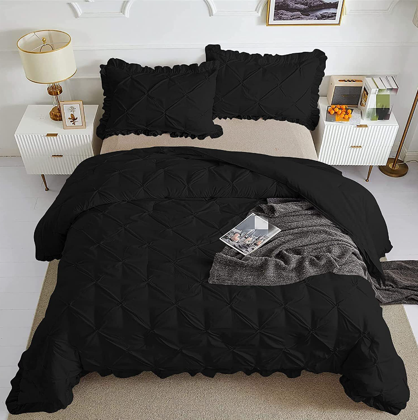 3 PC Pinch Pleated Comforter Set Egyptian Cotton 1000 TC All Size & Solid Color