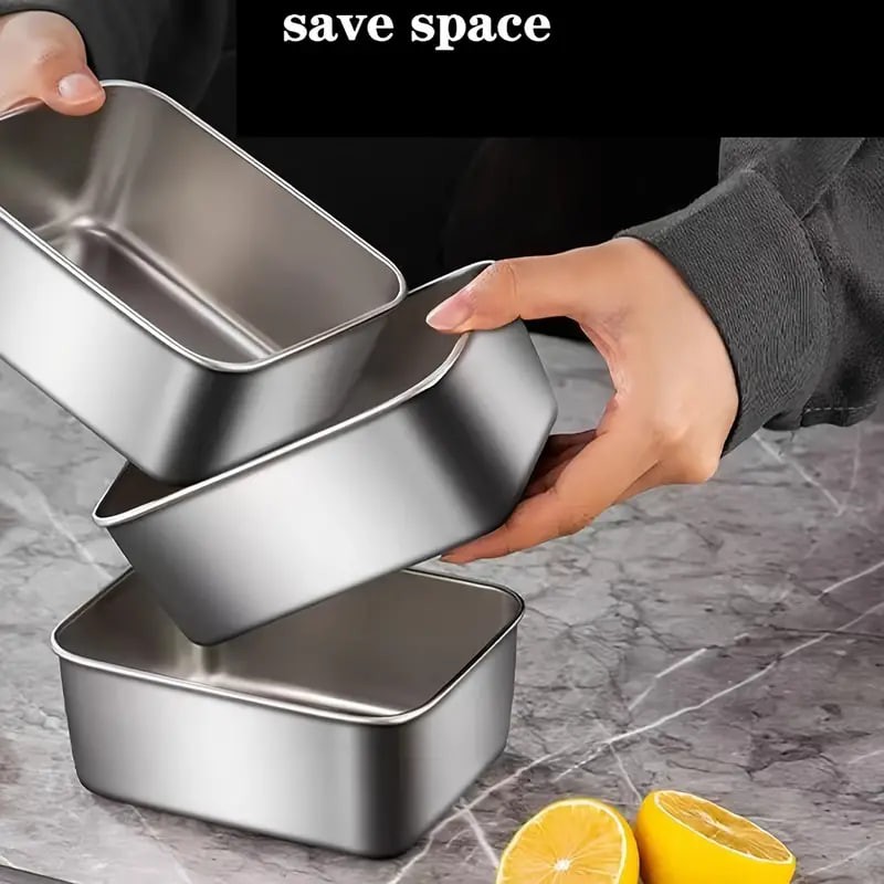 4 Sets Stainless Steel Fresh-keeping Box, Refrigerator Cooler Storage Box, Sealed Anti-overflow Bento Box, Picnic Lunch Box, Meal Prep Square Box, For Camping Picnic And Beach, Home Kitchen Supplies