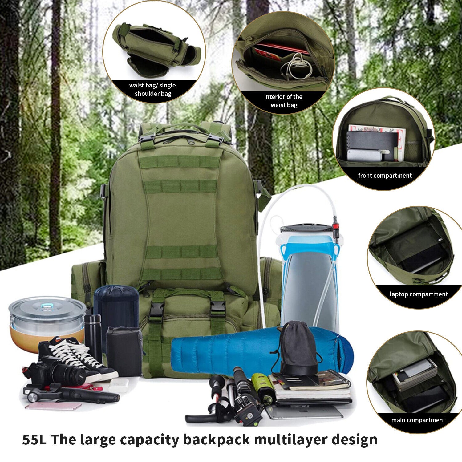 55L Large Tactical Backpack Military Army Molle Bag Rucksack 3 Day Assault Pack