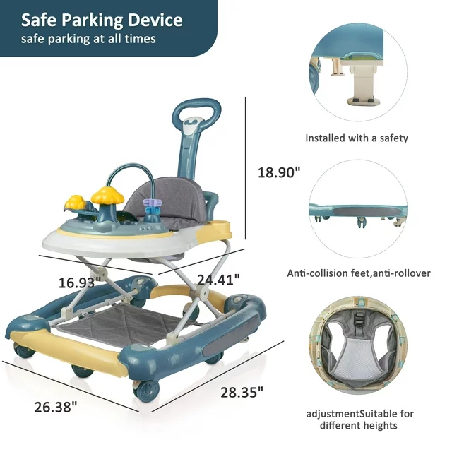 Activity Baby Walkers with Removable Toy Tray for Boys&Girls, Music - Unisex,Blue