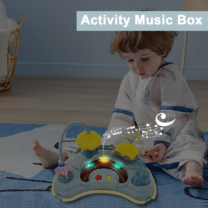 Simulated Driving Experience: Turn the steering wheel and start driving. This car-shaped baby walker is designed with simulated sound effect to make ''driving'' more realistic. There is a music box with adjustable volume and while playing, the around lights flash. It will be a best way to develop baby's intelligence with simple colors and music.