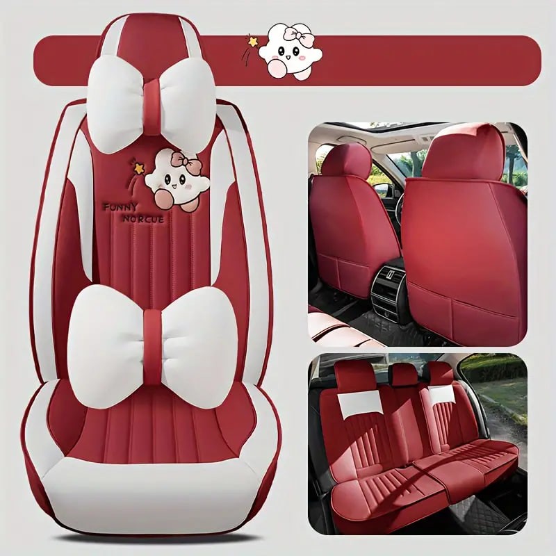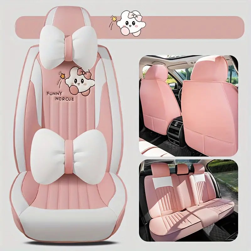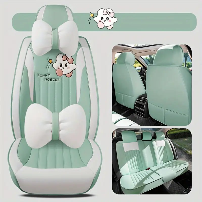 Car Seat Cushion Four Seasons Universal Seat Cover Fully Encircling Seat Cushion Faux Leather New Cartoon Goddess Special Breathable Seat Cover