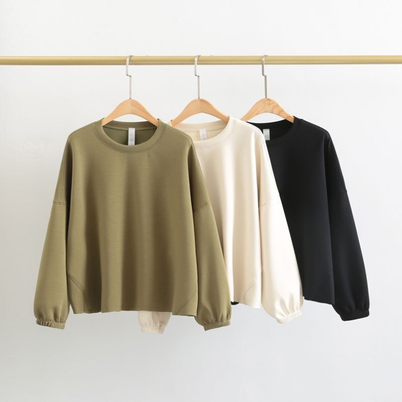 Casual Crewneck Women Sweatshirts Cropped Loose Fit Long Sleeve Workout Tops New