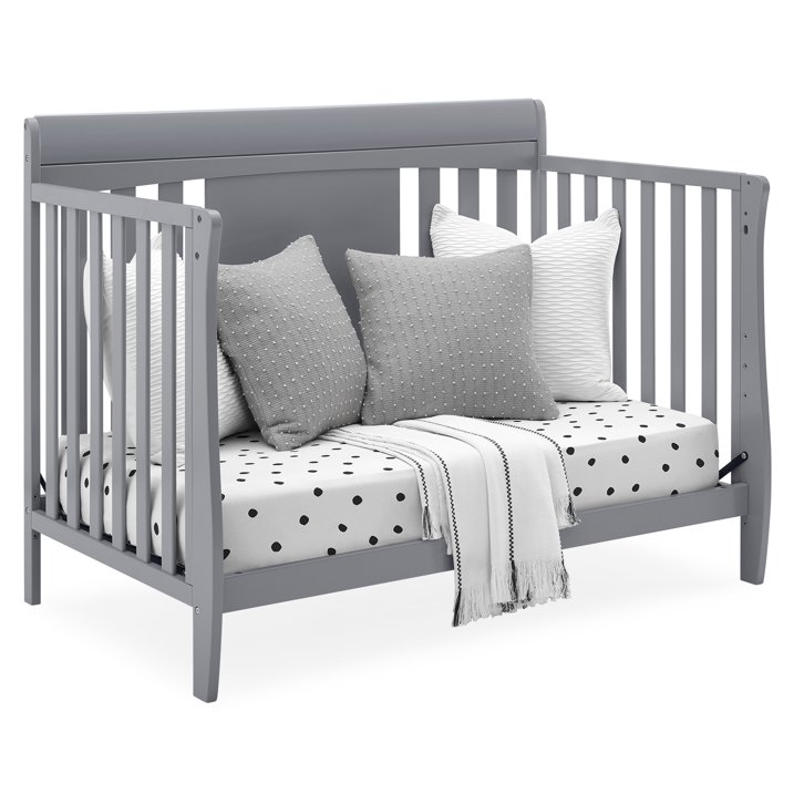 Timelessly styled and expertly designed, the Richmond 6-in-1 Convertible Baby Crib by Delta Children will be a gracious centerpiece in your child’s bedroom for years to come. It features an updated sleigh-style silhouette, durable finish and intricate headboard with varying size slats--a winning combination for any nursery. The only bed your child will ever need, this versatile crib easily transitions with each stage of their growth by converting to a toddler bed, daybed, sofa and full size bed with or without footboard. Available in Grey, Bianca White or Dark Chocolate, the Richmond 6-in-1 Convertible Crib by Delta Children coordinates with other items from Delta Children in the same finishes. Conversion rail sold separately. Delta Children was founded around the idea of making safe, high-quality cribs affordable for all families. That's why all Delta Children cribs are JPMA certified, and are tested above and beyond industry standards.