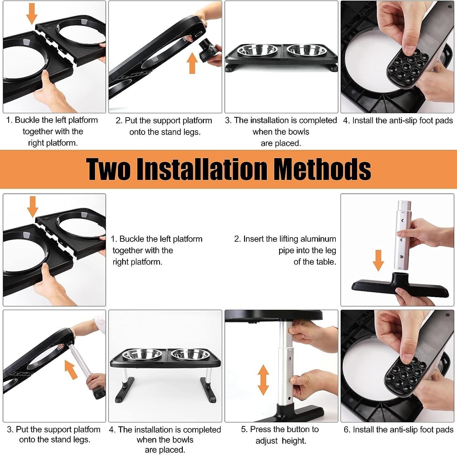 Elevated Dog Bowls for Large Dogs, 4 Adjustable Heights Raised Pet Bowl Stand US