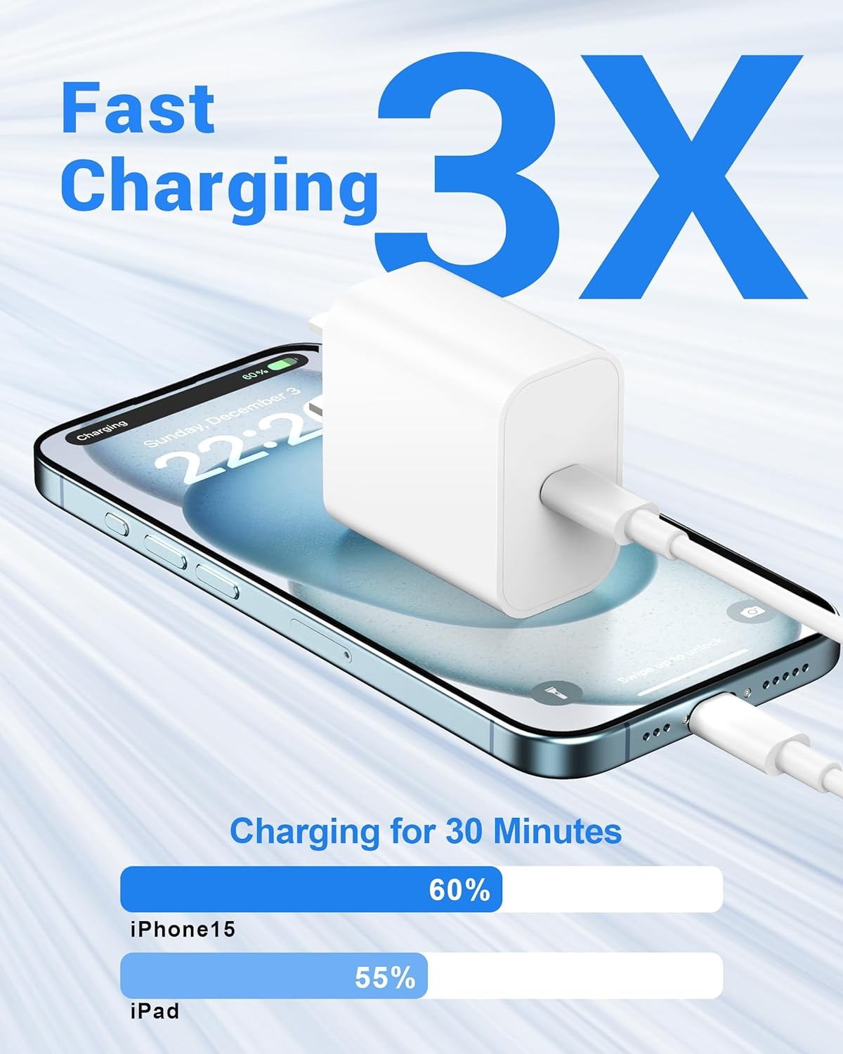 • 【Safe & Reliable】 The upgraded Type C fast charger kit built-in multiple protection systems to avoid over-voltage, over-charge, over-heating; The iPad air charger iPad mini charger can automatically match the current required by your devices to charge your devices quickly, safely and stably.