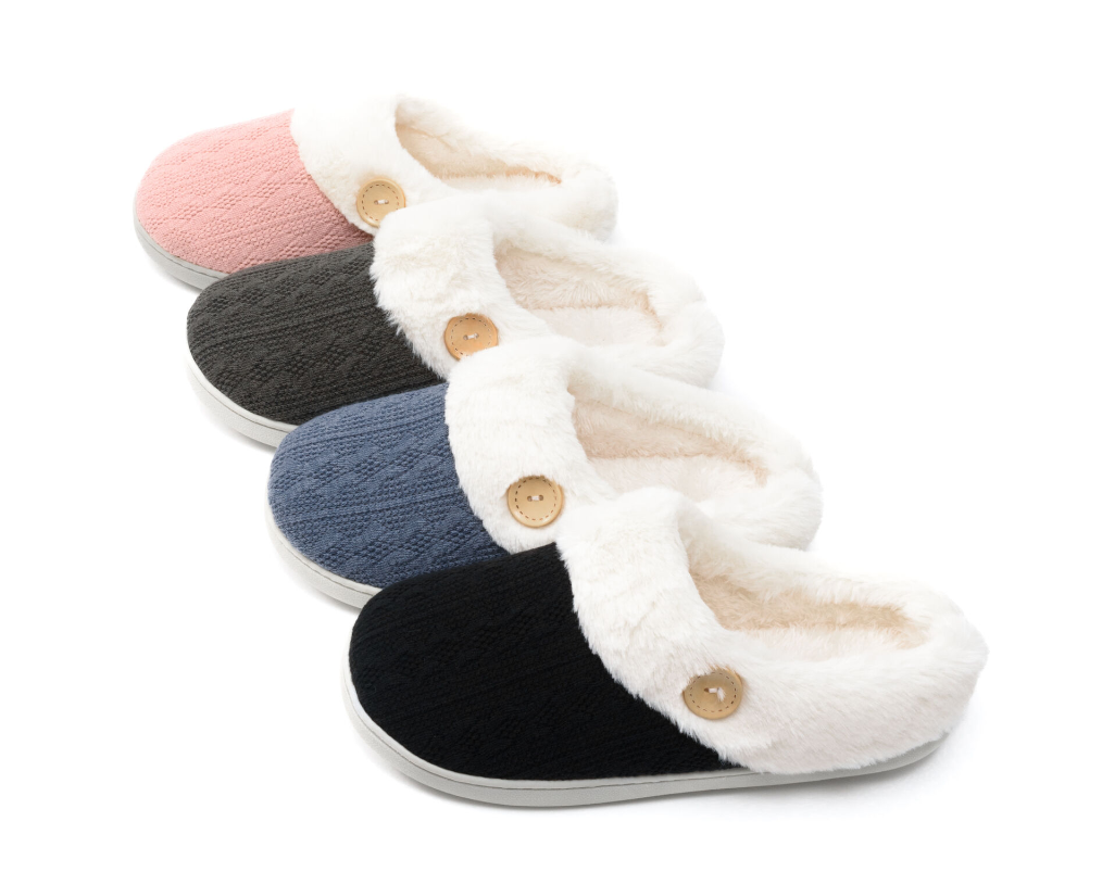 JACKSHIBO Ladies Womens Slippers Slip On Comfy Cozy Mules Memory FoamFor Winter