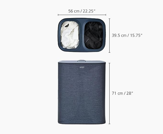 This smart laundry basket features a host of practical features that help make laundry day less of a chore. Beneath the lid it has two fabric tote bags allowing you to separate washing into light and dark/colored fabrics. Each bag has handles at the top enabling you to conveniently lift and carry it straight to the machine and a helper handle on the base to make emptying easier. When replacing each bag in the basket there’s no fiddly ties or buttons to do up either as the self-locating rim ensures it drops perfectly back into place, ready for the next load. The stylish fabric exterior is designed to compliment a range of interior styles and decors making it perfect for storing in the bathroom, bedroom or utility room. Available in two sizes and two colors, it comes flat-packed with full assembly instructions.