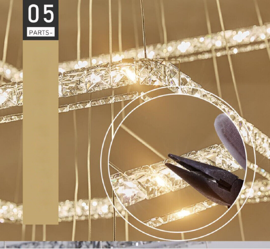 LED Square K9 Crystal Ceiling Fixture Dining Room Pendant Lamp Light Chandelier