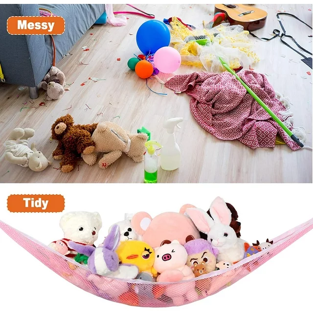 Easy Install: Our  net is easy to install and sturdy. It is an ideal toy storage hammock for bedrooms and playrooms can keep your house tidy and beautiful.