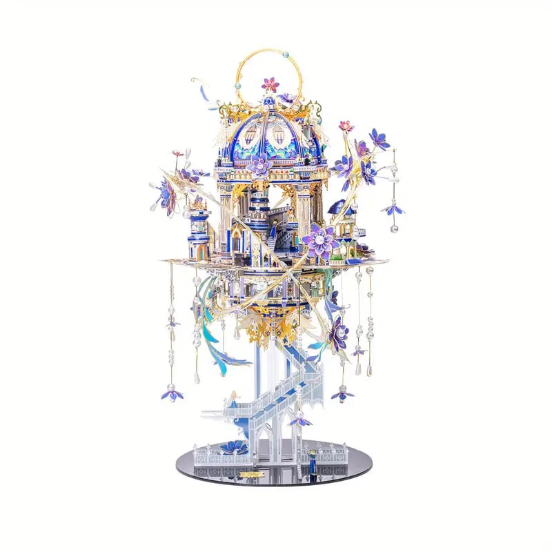 About this item 【About the music box】the background music is I WILL ALWAYS LOVE YOU 【About the light sets】: the lights and chargeable batteries are included inside of the 3D metal puzzle box. 【About the stand】 the colorful stand is included in the 3D metal puzzle packing box. 【MU tools】: MU assembling tools is not included(Tools set can be found in our store.You can find us on the product package for broken pieces and more questions). Parts can be easily cut off from the sheets. 【Recommended for