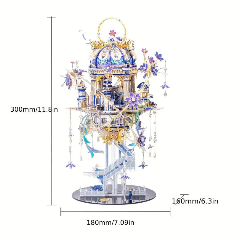 Package Included: 7 x Romeo and Juliet DIY Puzzle 3D Metal Model Kits Puzzle Sheets 1 x Instruction Manual 1x Acrylic base holder 1x rechargeable light sets 1x music box with BGM: I will always love you More details of product