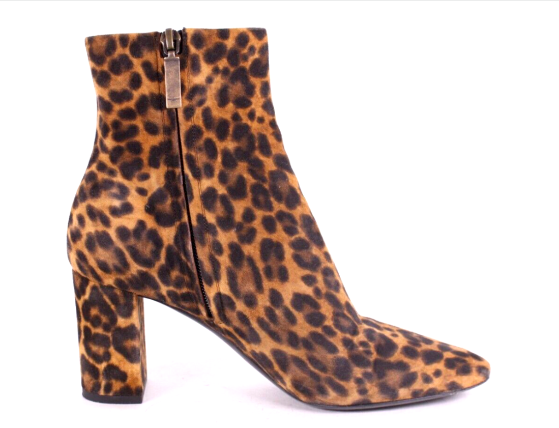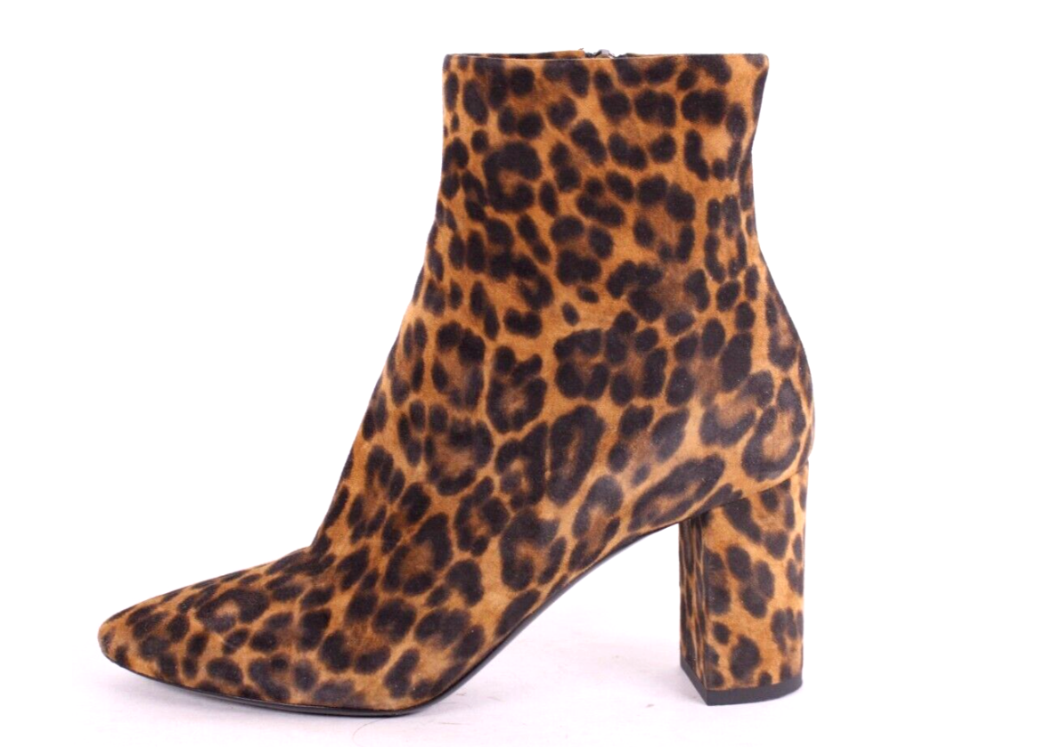 SAINT LAURENT Leopard Print Suede LOULOU Heeled Ankle Boots