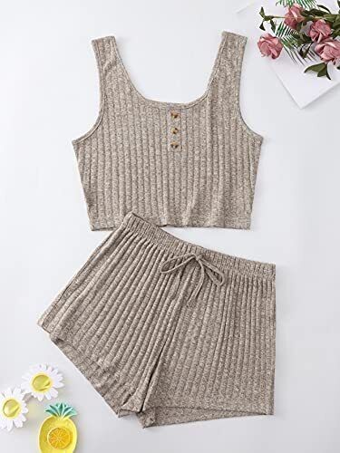 SheIn Women's 2 Piece Sleeveless Button Crop Tank Tops and Shorts Lounge Set