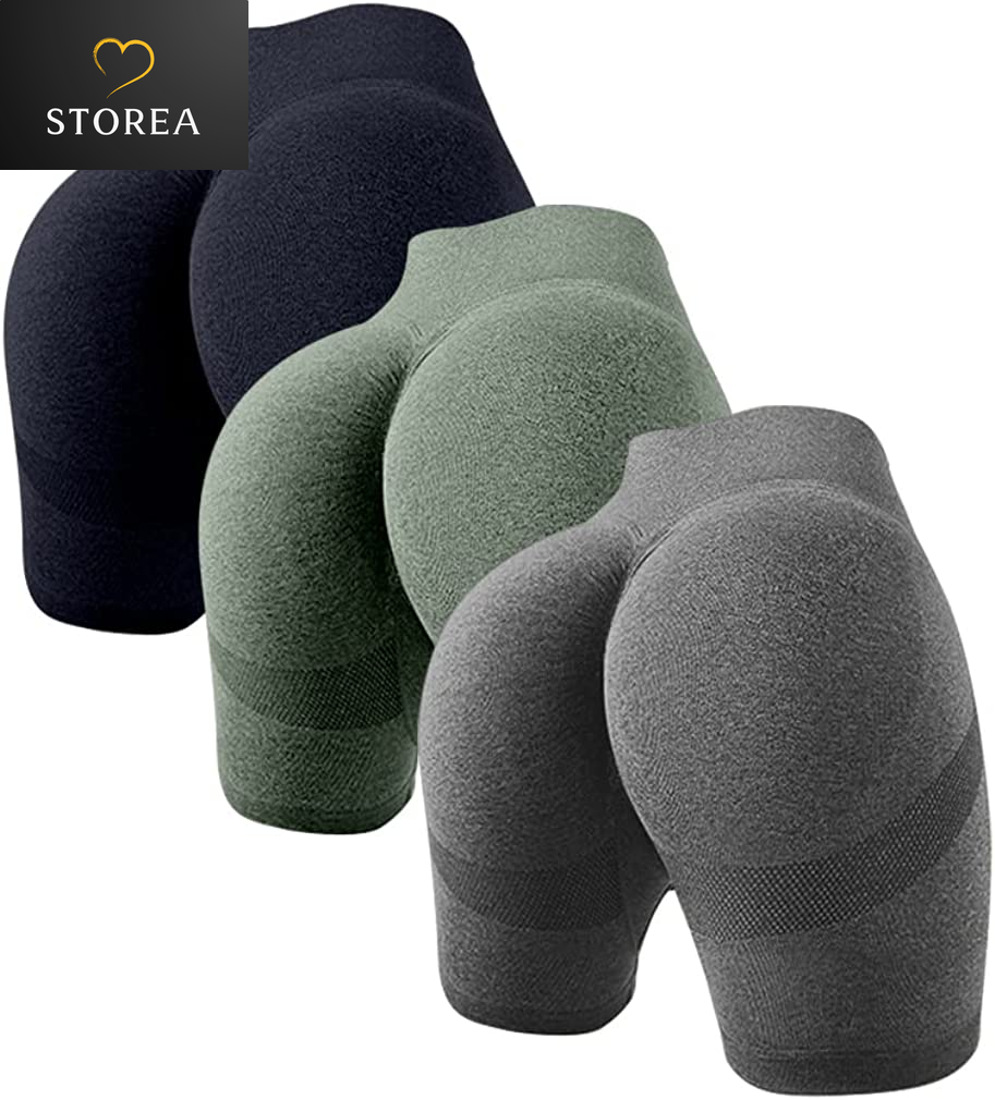 Women'S 3 Piece Butt Lifting Yoga Shorts Workout High Waist Tummy Control